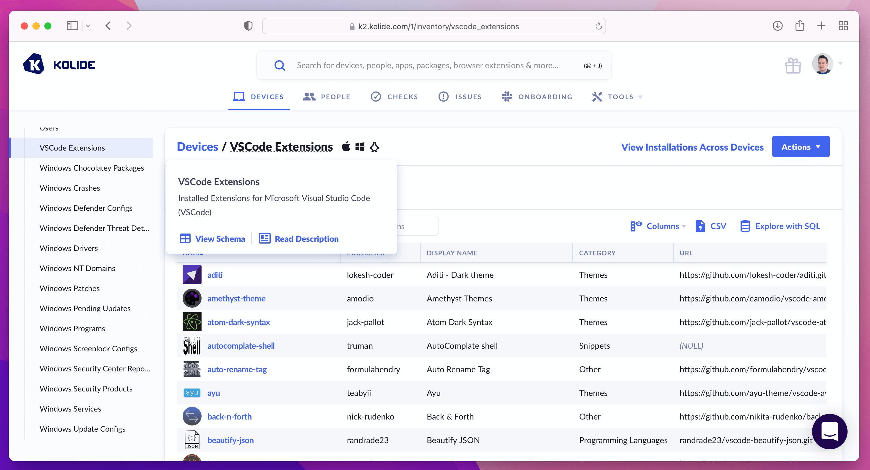 Exploring Device Properties is one of the most used features in Kolide and allows you to become all-knowing about the devices in your fleet.