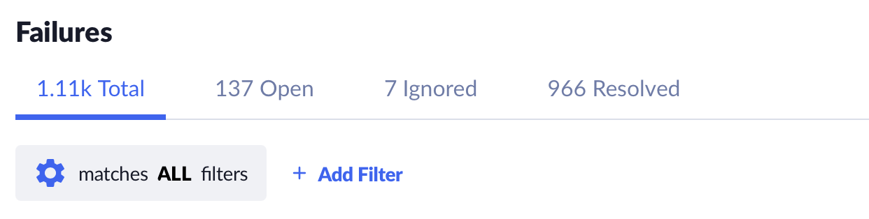 In the spirit of giving administrators the most flexibility when filtering, sorting, and searching failure data, we’ve created a new tab called Total which allows you to see all failures, regardless of the failure’s actual state.
